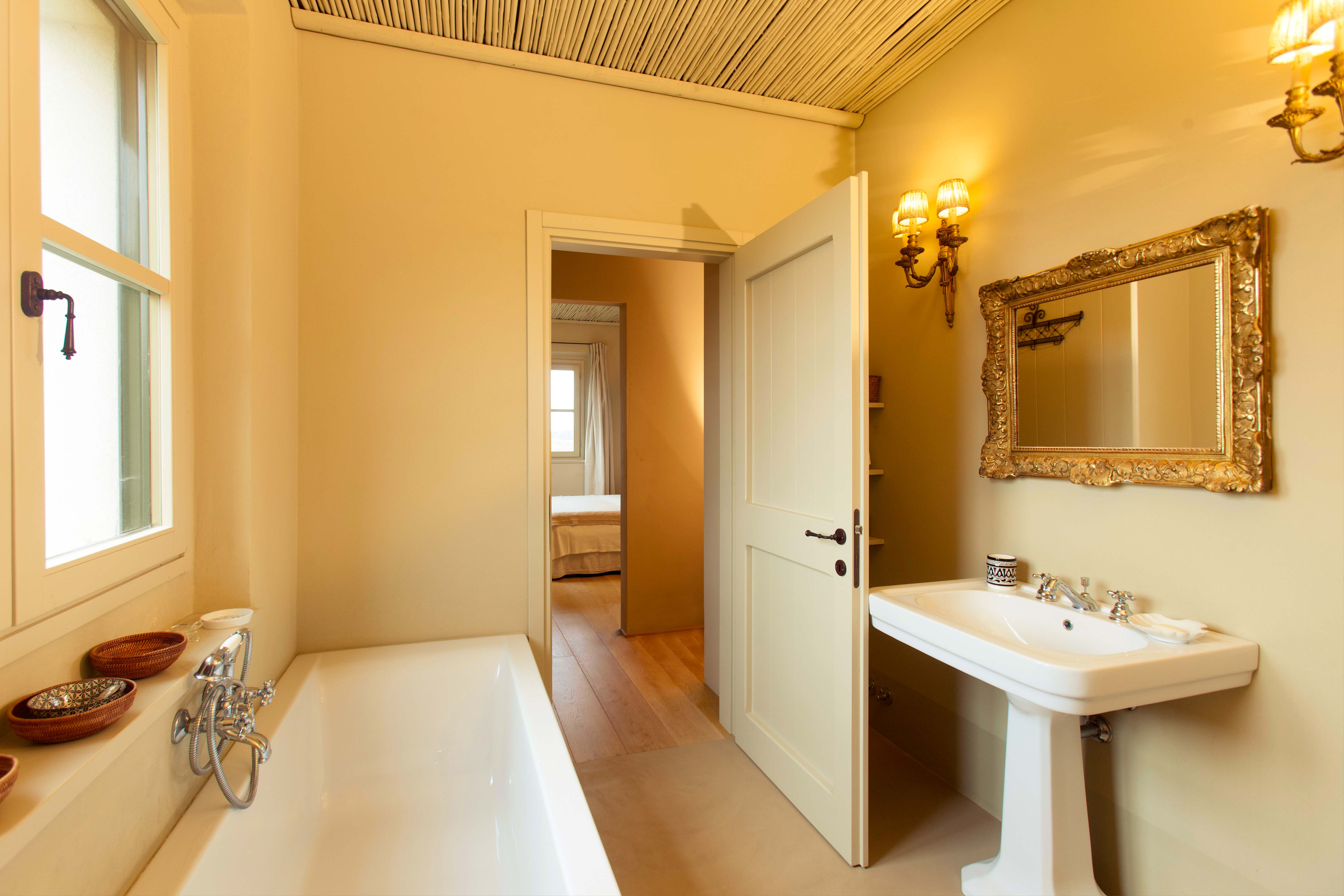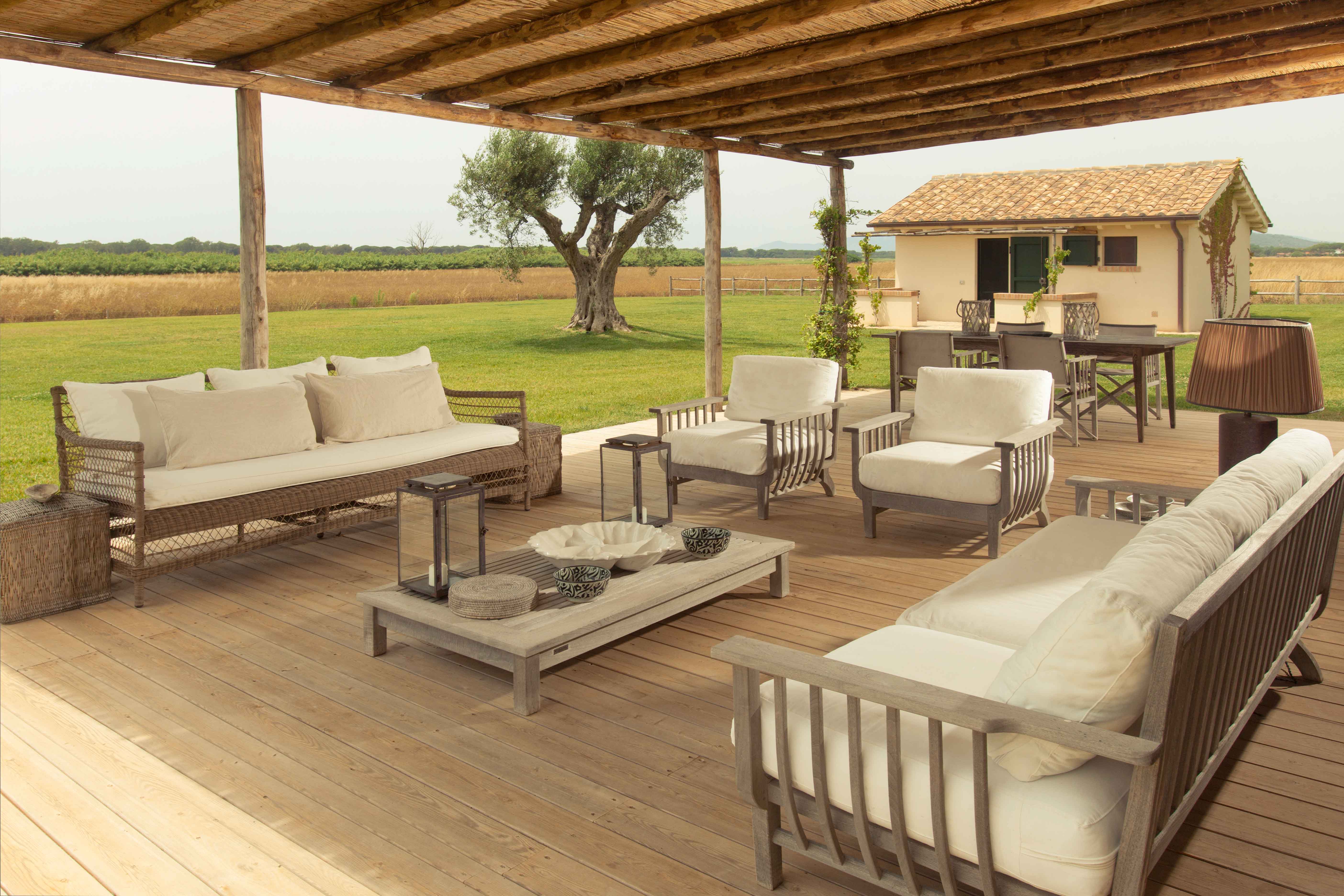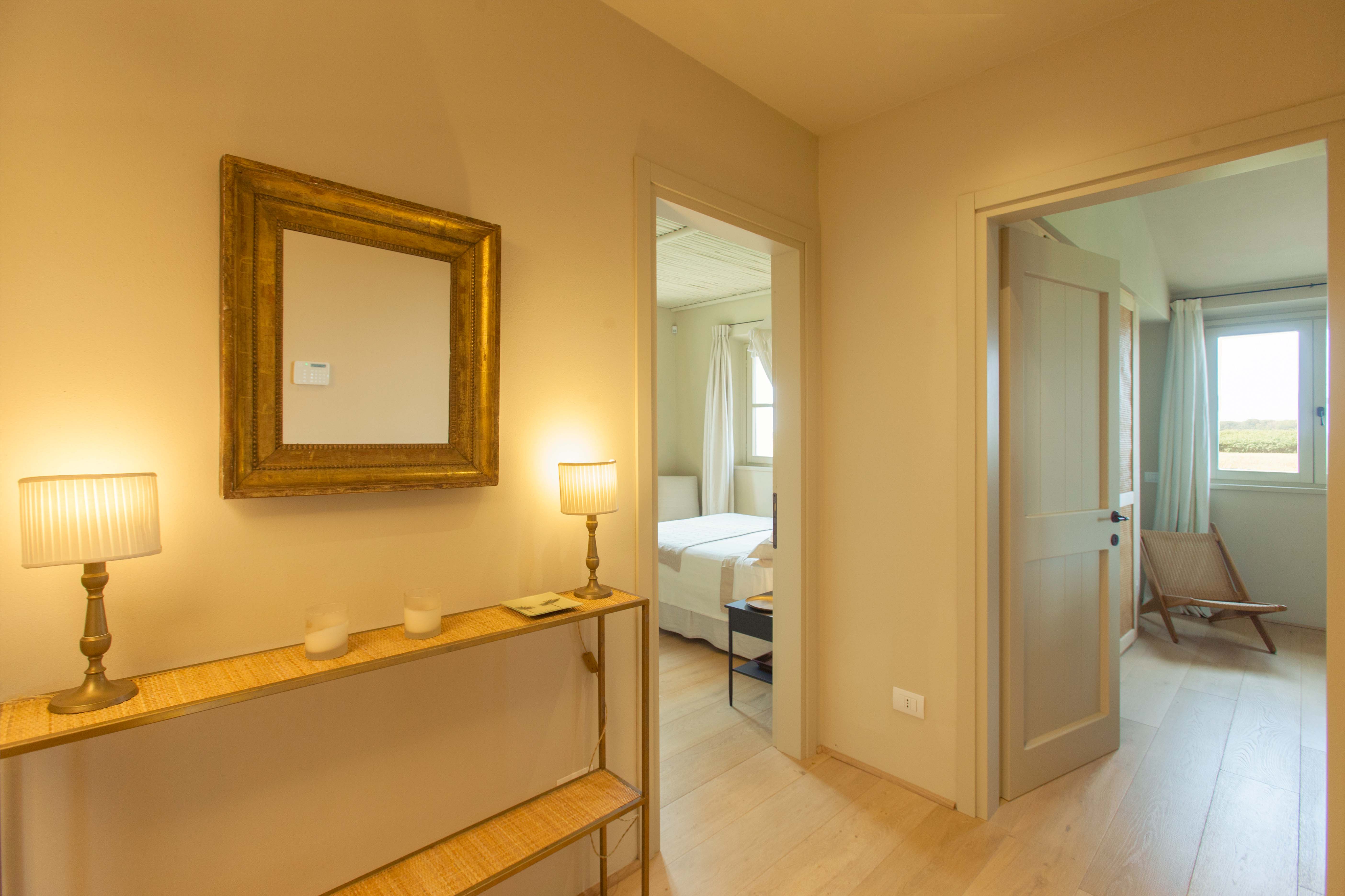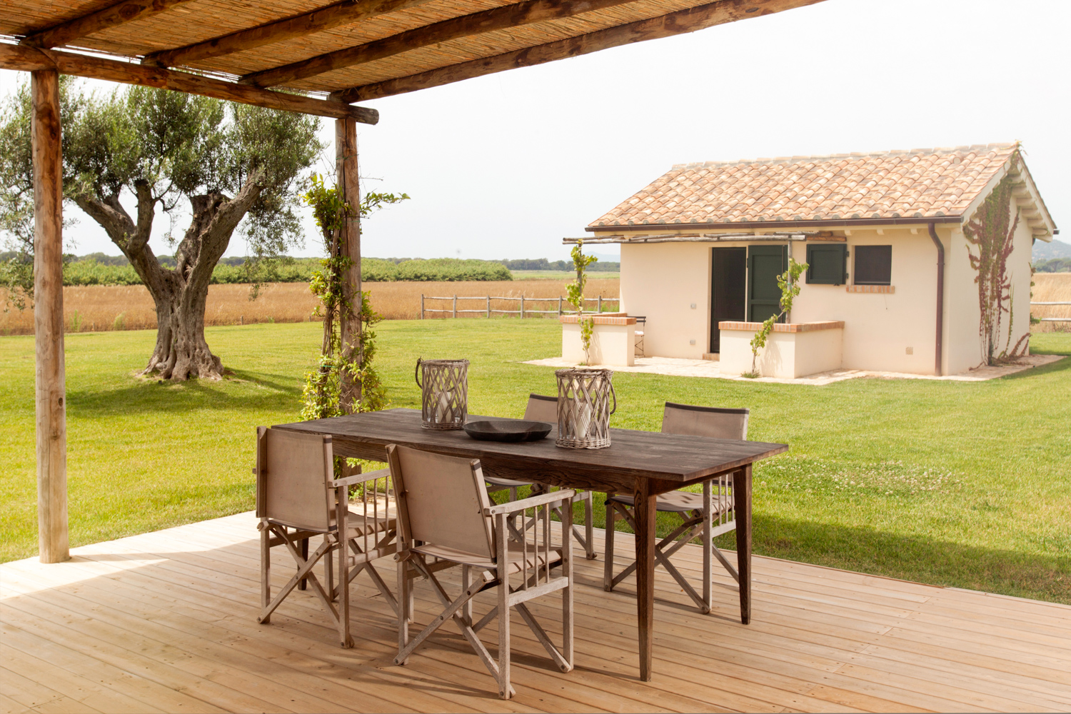 Il Cottage ha un bellissimo patio esterno che da sul giardino dove è possibile rilassarsi godendosi la vista dei campi che si estendono fino alla duna mediterranea. Una seconda pergola ricopre la sala da pranzo esterna, perfetta per mangiare all’aperto nei mesi estivi ma anche nelle giornate di primavera e autunno.