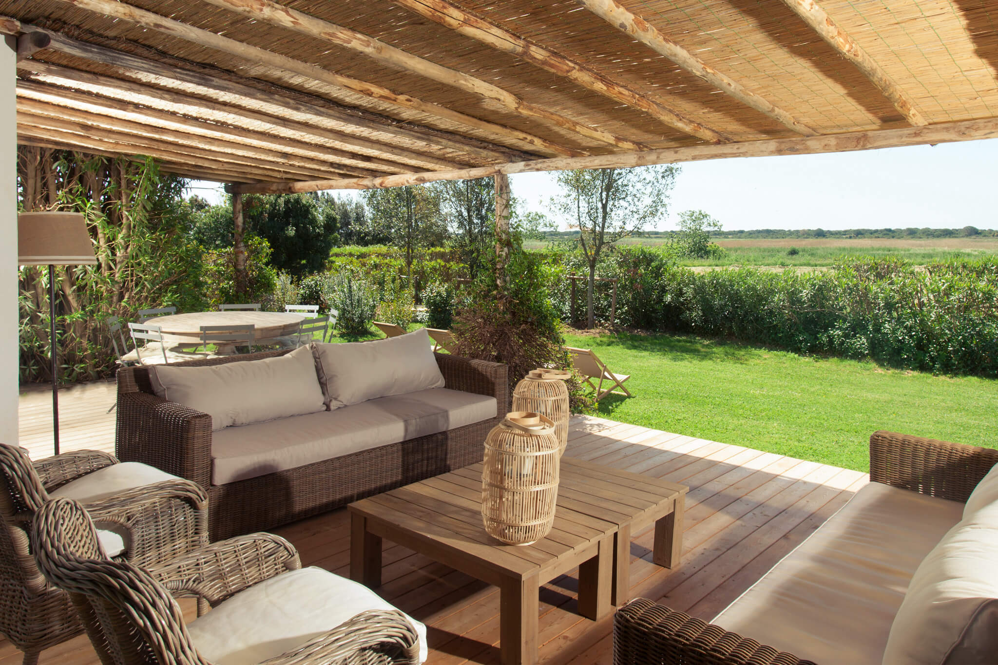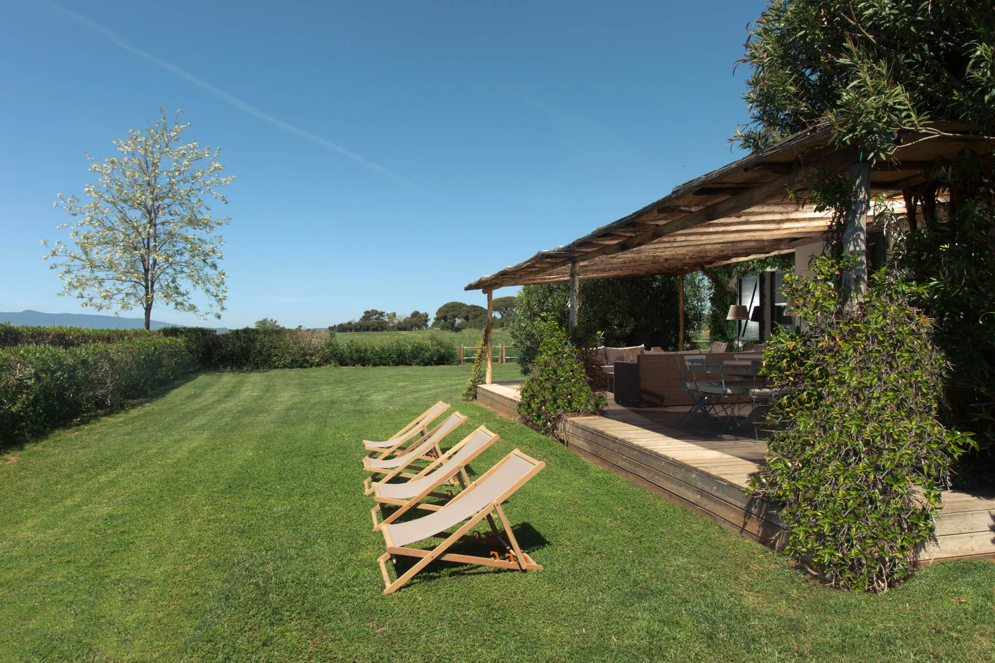 I nostri ospiti amano particolarmente il patio ed il giardino che si affacciano sull’Oasi naturale di Burano, sul lago e sulle ville vicine. Nelle giornate di burrasca, si sente il rumore delle onde del mare portato dal vento.