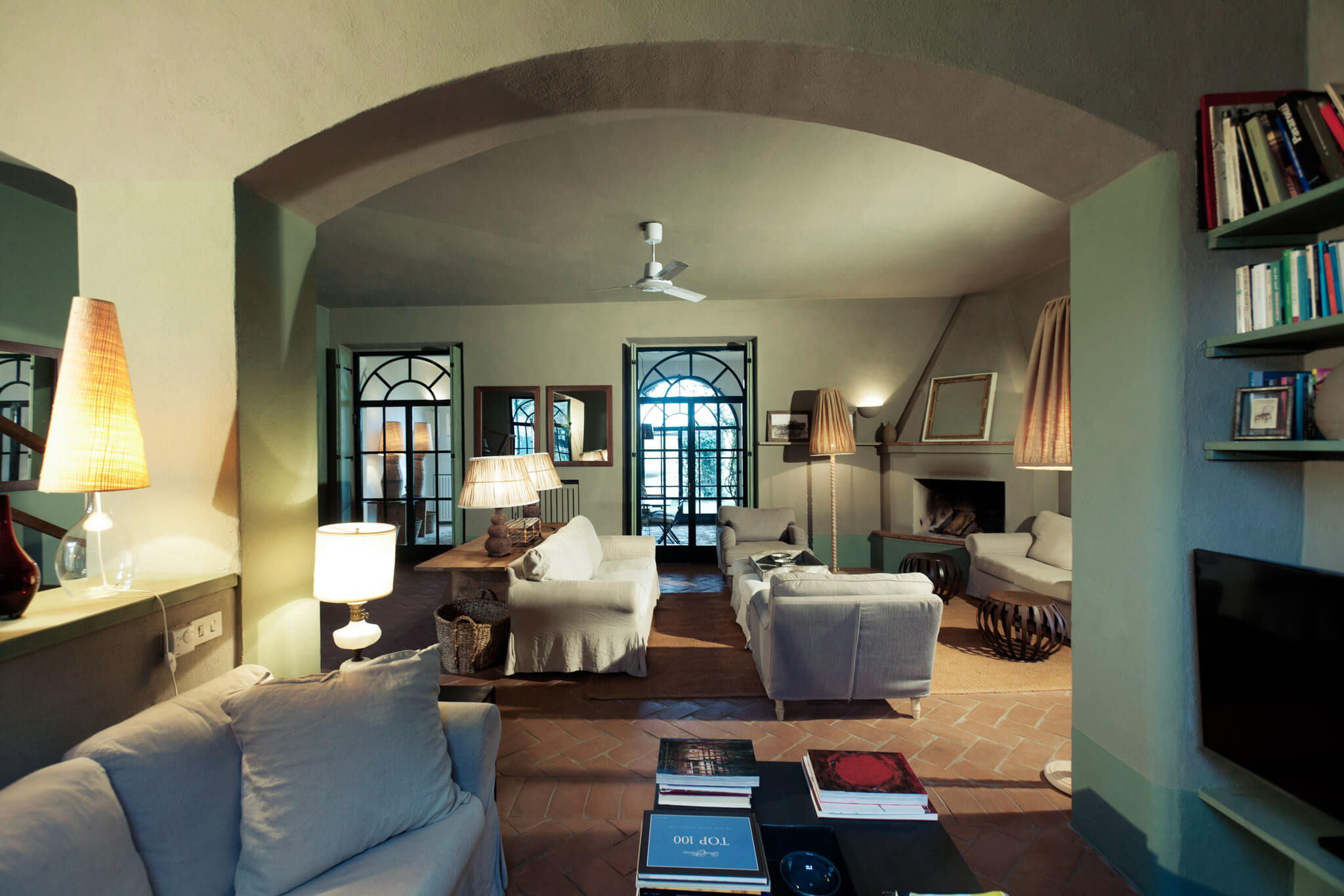 La Villa della Vite è composta da un grande casale centrale e da due dépendance. Il casale principale si sviluppa su due piani: al piano terra ci sono la cucina, la sala da pranzo con un grande tavolo conviviale, il soggiorno, lo studio, il bagno, la lavanderia ed una camera per il personale di servizio.